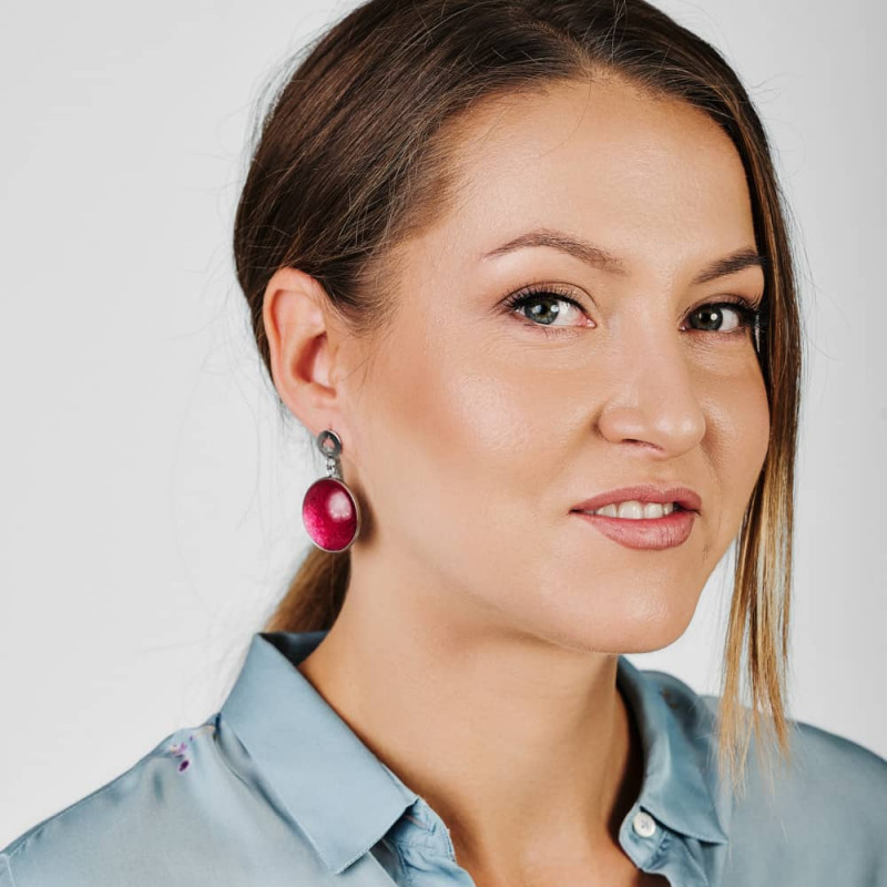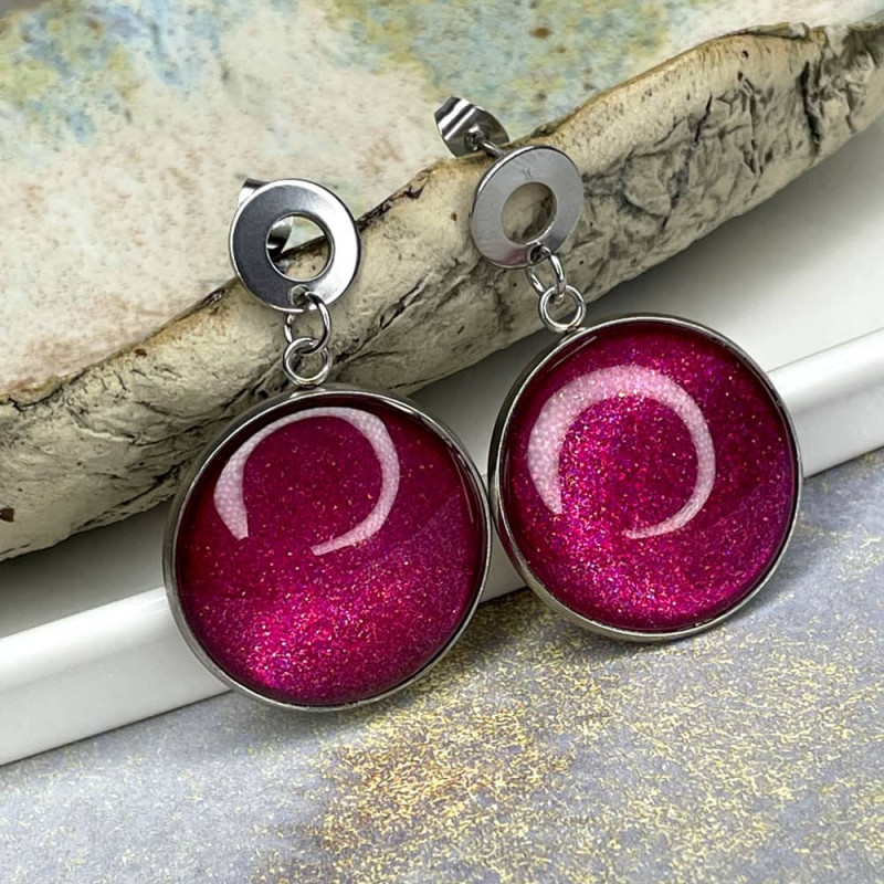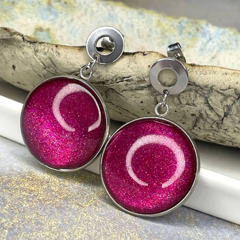 Te pełne blasku kolczyki są częścią kolekcji “W blasku perłowego księżyca”. Kolczyki wykonane są z ręcznie malowanych kaboszonów umieszczonych w bazach ze stali szlachetnej. Szklane elementy zachwycają subtelnym, opalizującym blaskiem, który jest niczym odbicie księżyca na tafli wody. Kolczyki mienią się w świetle, przyciągając wzrok i dodają elegancji każdej stylizacji. Ten dodatek jest idealny dla osób ceniących sobie wyrafinowaną i ponadczasową biżuterię. Zobacz również “Wisiorek w perłowym odcieniu rubinu Dolunay e35/35” do kompletu.