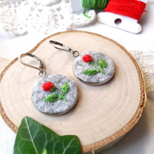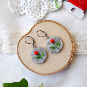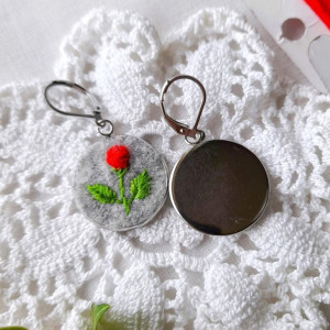 Delikatne, lekkie, haftowane ręcznie kolczyki jak soczyste czerwone róże w listopadowej mgle przed rozkwitem. Ucieszą wielbicielki romantycznego stylu i kwiatowej biżuterii.