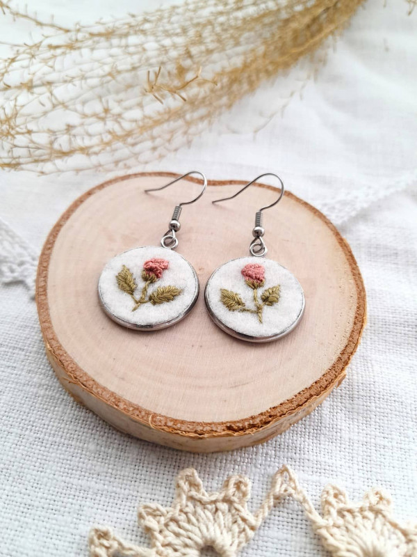 Do kolczyków można dopasować (lub zamówić) wisiorek z haftem do kompletu.