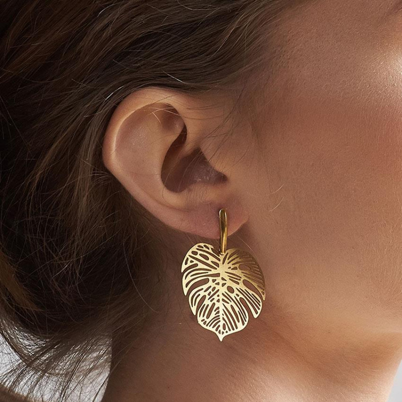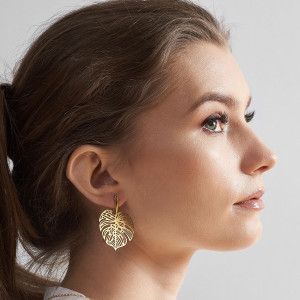 Te eleganckie kolczyki w minimalistycznym stylu zachwycają ażurowym motywem liścia monstery, który subtelnie nawiązuje do trendów inspirowanych naturą. Wykonane z wysokiej jakości mosiądzu, wolnego od niklu, kadmu i ołowiu, są lekkie i wygodne w noszeniu, dzięki czemu doskonale sprawdzą się zarówno na co dzień, jak i na specjalne okazje. Nowoczesny, roślinny design w połączeniu z precyzyjnym wykonaniem sprawia, że stanowią wyjątkowy dodatek dla kobiet ceniących ponadczasową elegancję i oryginalne akcenty w biżuterii.