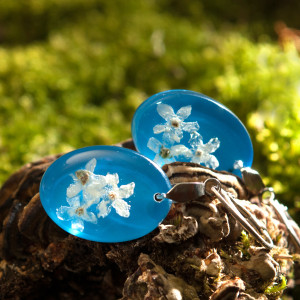 żywica, niezapominajki, srebro 925
