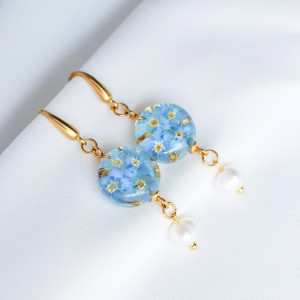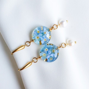 Kolczyki wykonany jest z żywicy epoksydowej z wykorzystaniem suszonych kwiatów. Metalowe elementy to stal nierdzewna szlachetna chirurgiczna.