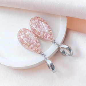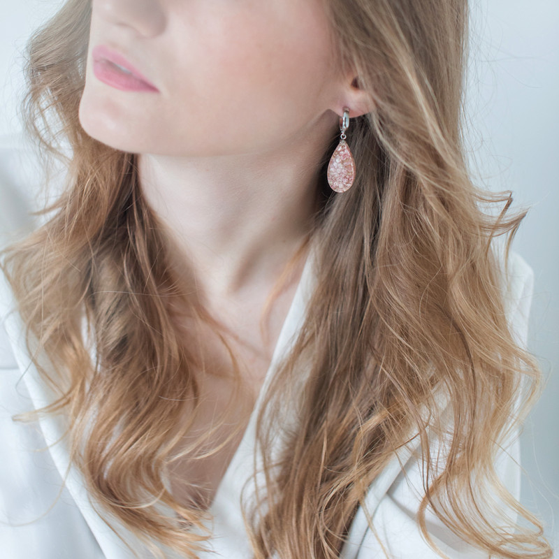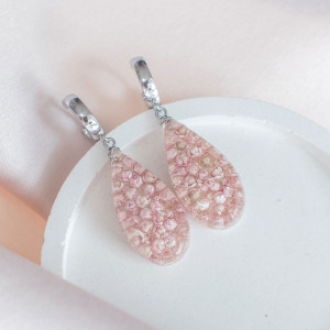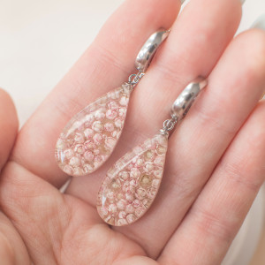 Kolczyki wykonany jest z żywicy epoksydowej z wykorzystaniem suszonych kwiatów. Metalowe elementy to stal nierdzewna szlachetna chirurgiczna.