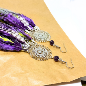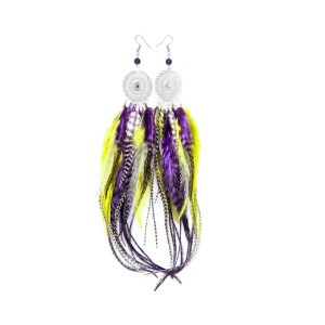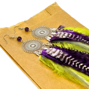 Unikalny model. Do wykonania użyłam pięknych, naturalnych, barwionych piór - nadają mu szczególnej lekkości, charakteru ale i deliktaności. Wyjątkowa kompozycja kolorów zapewnia prawdziwy efekt wow, kolczyki są jednocześnie wyraziste i ekstrawaganckie.