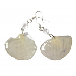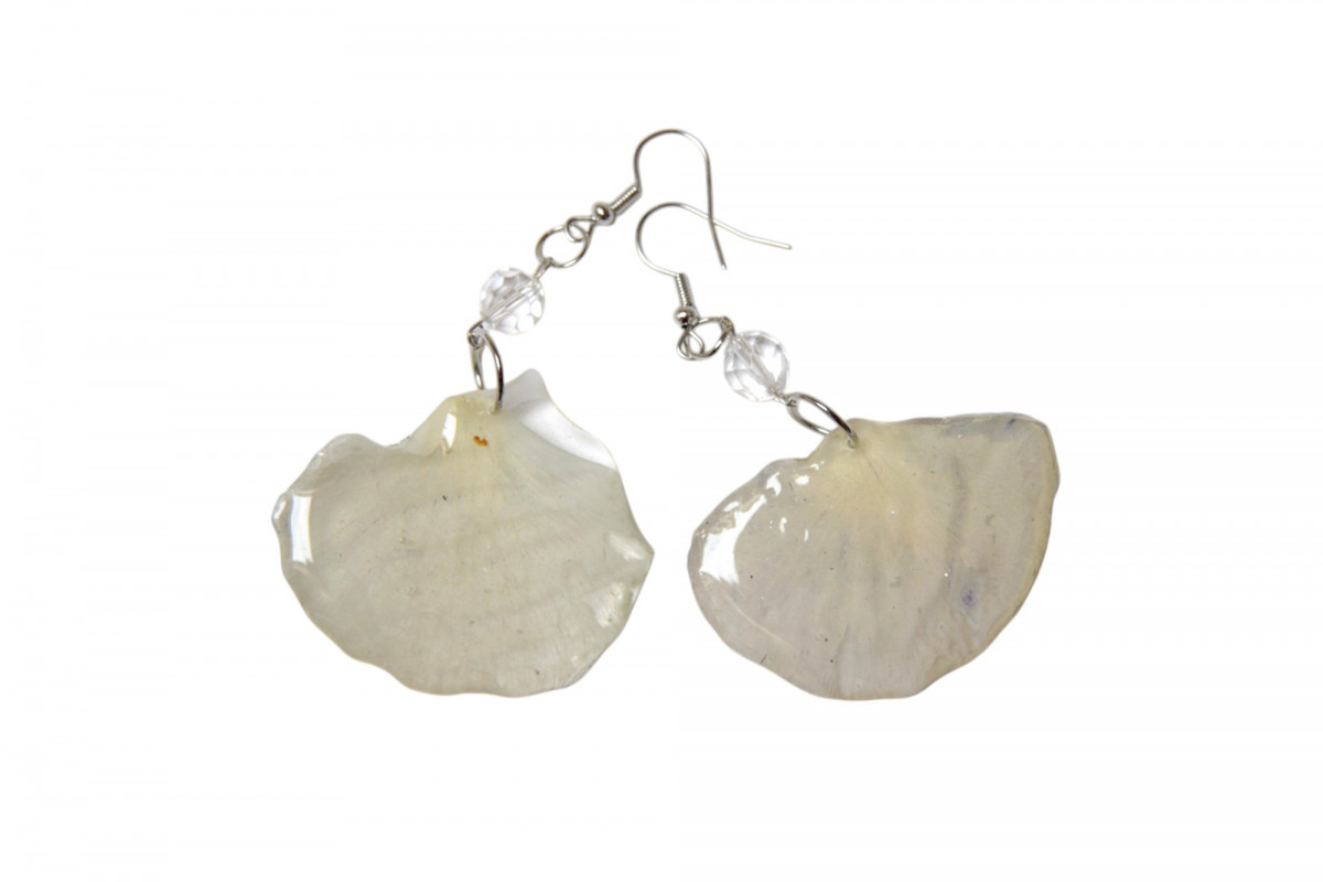 Wymiary kwiatów: około 4,5 x 3 cm, długość całkowita kolczyka (od mocowania w uchu) około 7,5 cm.