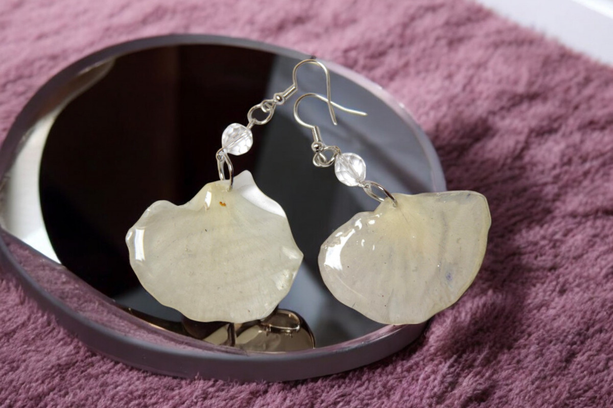 Suszone kwiaty zalane żywicą to niezwykła i oryginalna biżuteria. Każdy kwiat został starannie wyselekcjonowany i suszony, a następnie zanurzony w przezroczystej żywicy, która podkreśla jego naturalne piękno i kształt.