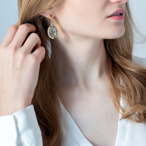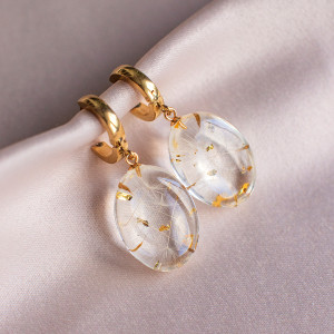 Kolczyki wykonany jest z żywicy epoksydowej z wykorzystaniem suszonych kwiatów. Metalowe elementy to stal nierdzewna szlachetna chirurgiczna.