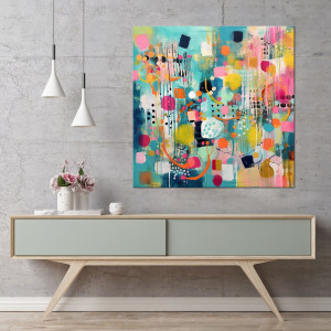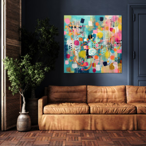 Kolorowa abstrakcja - turkusowy obraz abstrakcyjny
