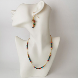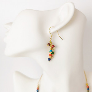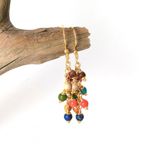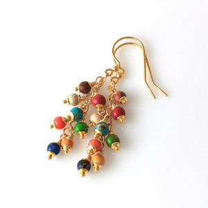 Kolorowe kolczyki gronka jaspis pozłacane srebro
