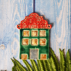 Kolorowy domek ceramiczny, duża zawieszka