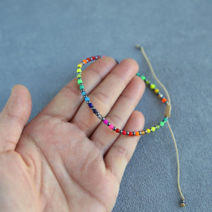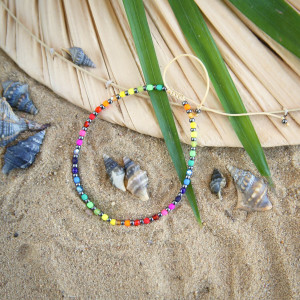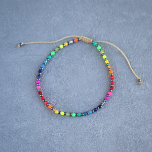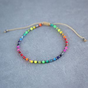 Bransoletka do noszenia na nodze/kostce ze szklanych koralików w kolorach tęczy.