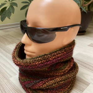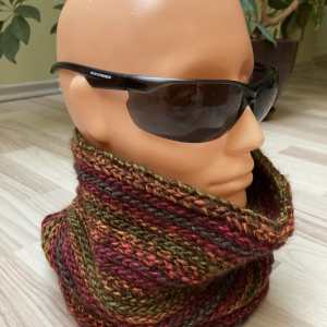 Miękki komin zrobiony na szydełku z mieszanki wełny i akrylu.