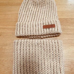Komplet beżowa czapka i komin z wełną Merino