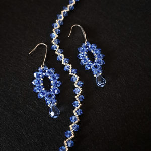Ręcznie wykonane z:- Preciosa Bicone Sapphire - kryształki w rozmiarach 3 i 4 mm - czysty, intensywny błękit,
