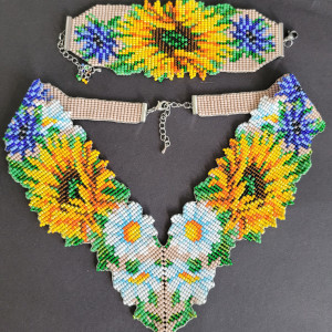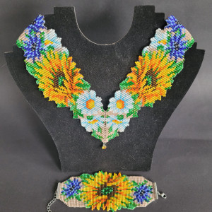 Komplet "Bukiet Słoneczny" naszyjnik i bransoletka z koralików