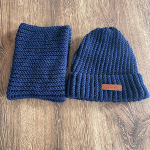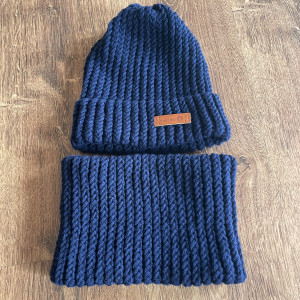 Komplet granatowa czapka i komin z wełną Merino