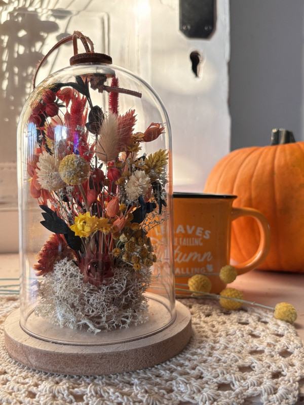 Kopułka klosz dekoracja jesienna suszone kwiaty prezent