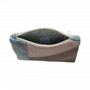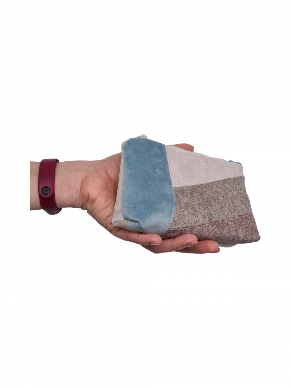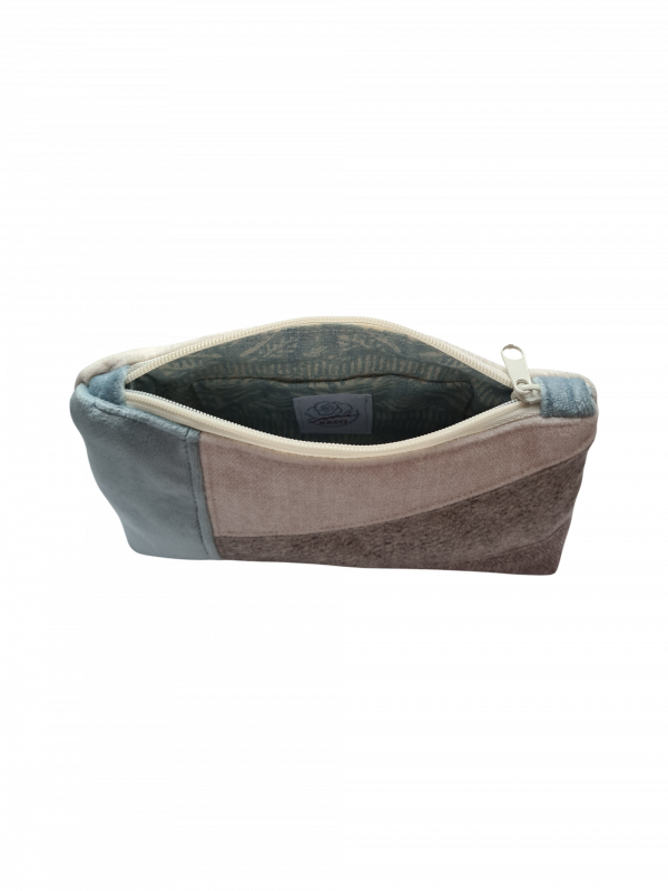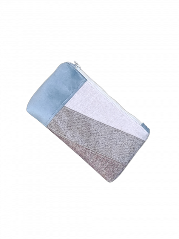 Kosmetyczka została uszyta z materiałów z drugiego obiegu - głównie ścinków tapicerskich, a także fragmentów pościeli i koszul. Tkaniny tapicerskie sprawiają, że kosmetyczka jest solidna i odporna na intensywne użytkowanie. Zamiast zostać odrzucone, zostały przekształcone w trwały i funkcjonalny dodatek. Każdy egzemplarz to inne zestawienie tkanin i kolorów, dzięki czemu jest naprawdę jedyny w swoim rodzaju.