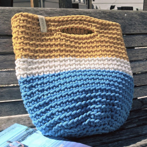Może służyć jako pojemnik na zabawki, osłonka na doniczkę. lub torebka do ręki.