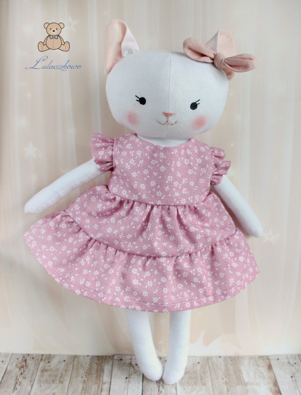 Kotek Lena przytulanka w sukieneczce róż retro w kwiatuszki