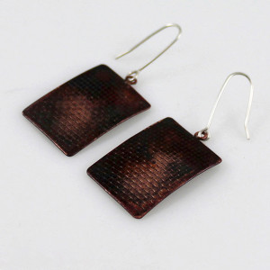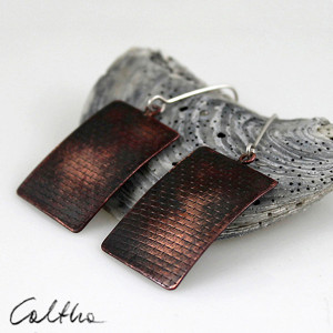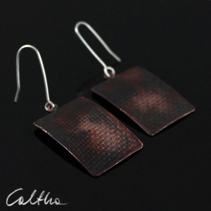 Kolczyki mają ciekawy kształt i fakturę, podkreśloną ciemną patyną uzyskaną w procesie oksydacji (bez użycia barwników).