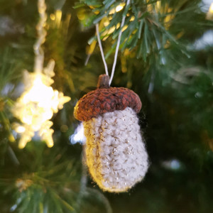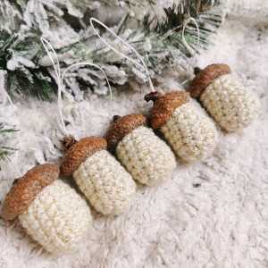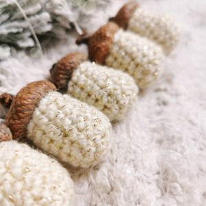 Żołędzie wykonane są na szydełku i mają prawdziwą żołędziową czapeczkę.