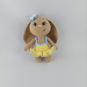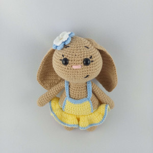 Ręcznie robiona króliczka Molly w pięknej sukience. Maskotka przyjemna i miła w dotyku. Posiada antyalergiczne wypełnienie i zamontowane bezpieczne oczka. Produkt przeznaczony dla dzieci od 3 roku życia.