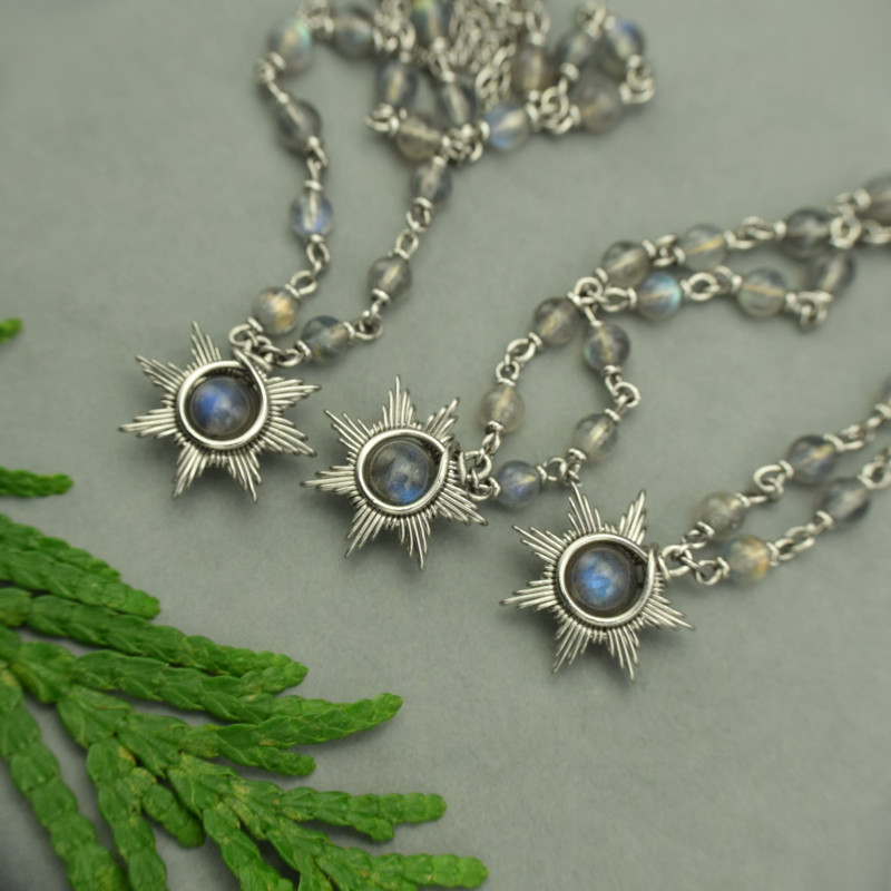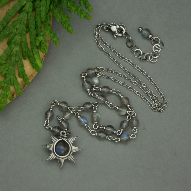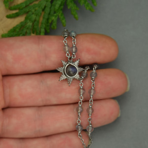 Krótki naszyjnik labradoryty słońce wire wrapping