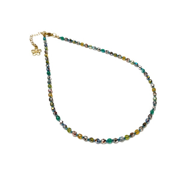 Krótki naszyjnik z kryształowych koralików kolorowy #1082