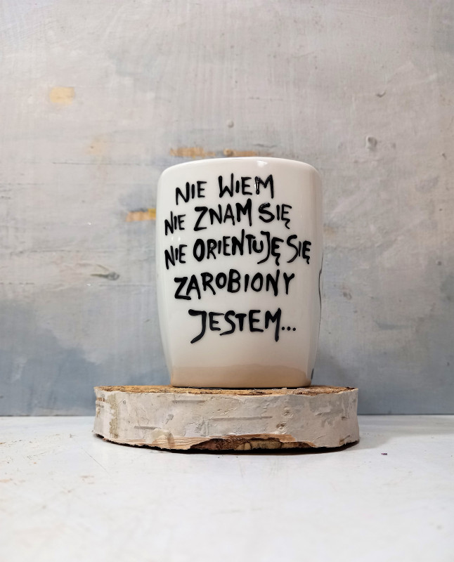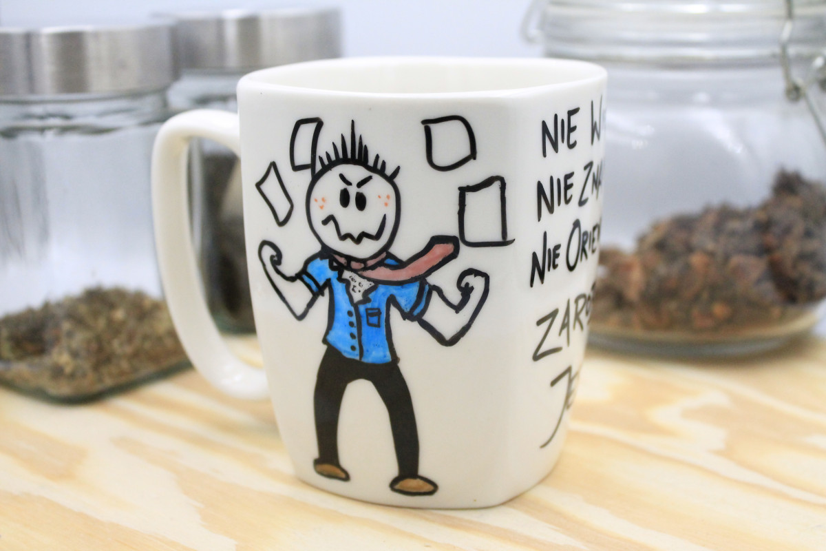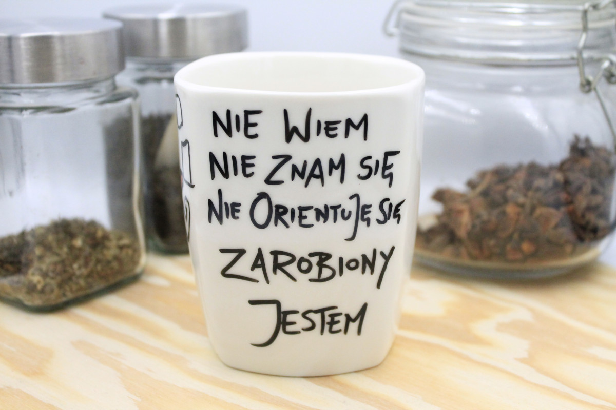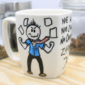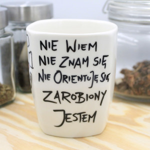 Wymiary: 320 ml, 9,9 cm wysokości, 8,2 cm szerokości, 10,5 cm z uchem.
