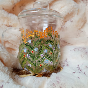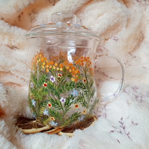 Kubek z zaparzaczem wrotycz ręcznie malowany 370 ml.