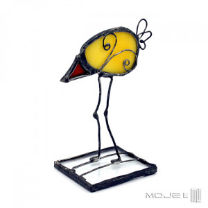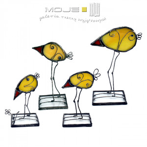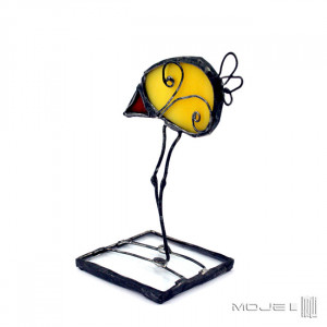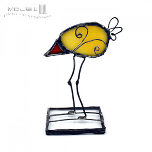 Dekor świąteczny - żółty szklany kurczak zrobiony witrażową metodą Tiffany.