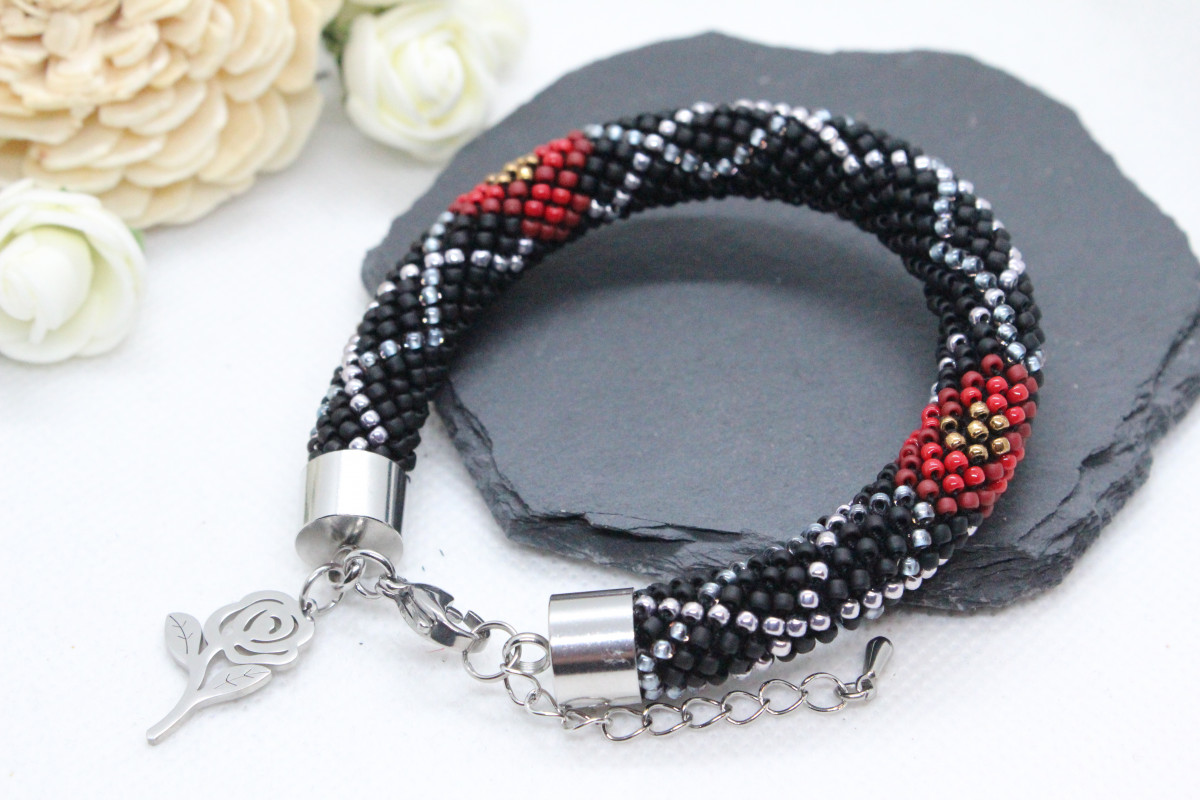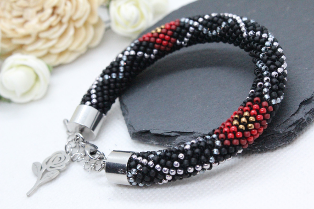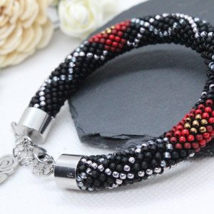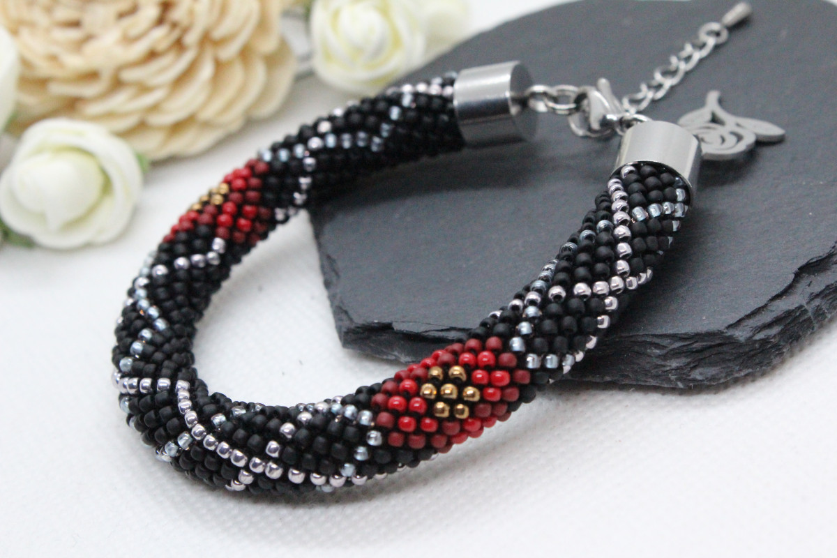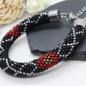 - Bransoletka wykonana ręcznie, techniką ukośnika, ze szklanych koralików japońskiej firmy Toho. Są to koraliki bardzo wysokiej jakości - odporne na ścieranie oraz odbarwienie.
