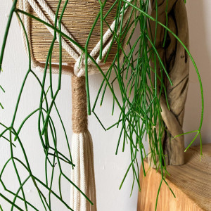 powieś na niej makramę. Makrama posiada odpowiednią zawieszkę do zawieszenia.