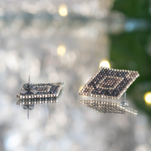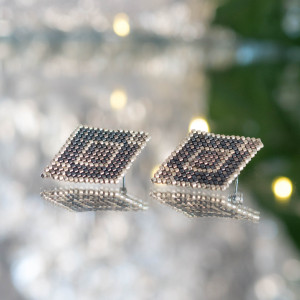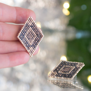 Lajla, czyli kolczyki o kształcie latawca. Wyplecione ręcznie z drobnych szklanych koralików wysokiej jakośći (Miyuki lub Toho), a zamocowane na sztyfcie ze stali chirurgicznej (316L).