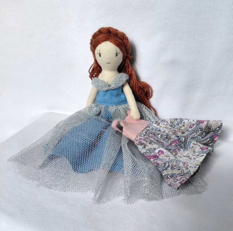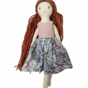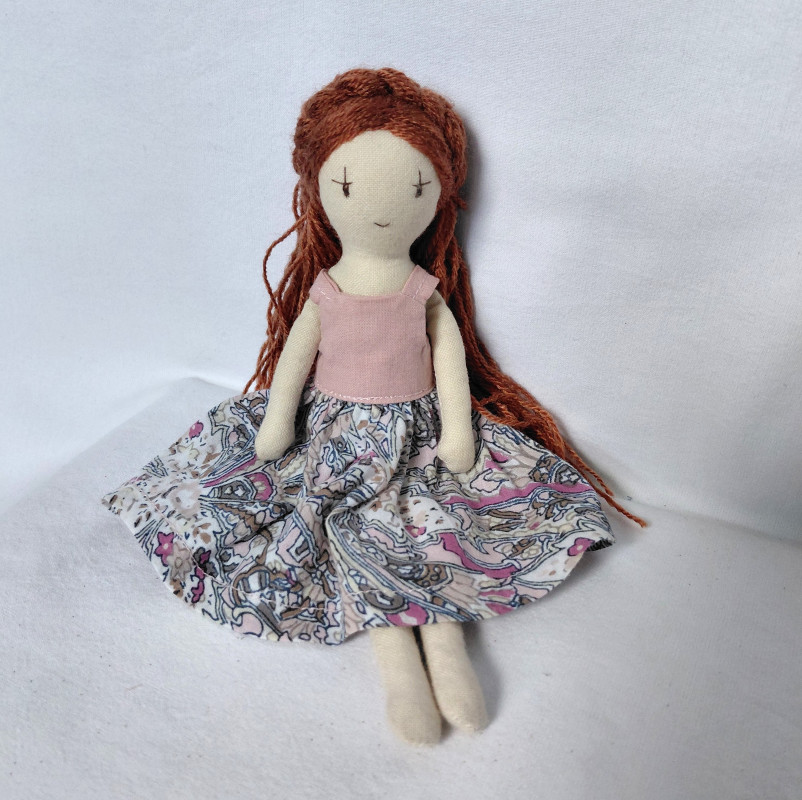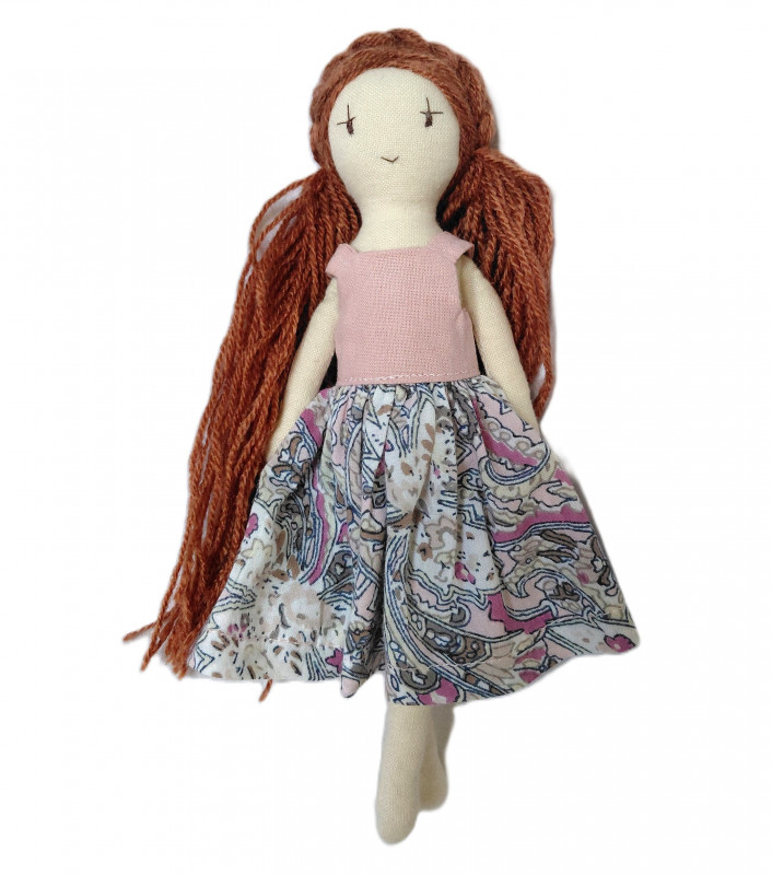 Lalka ma około 20 cm wysokości. Ręce i nogi ruchome. Uszyta z płótna bawełnianego i wypełniona kulką silikonową. Jest miękka i elastyczna. Podwójne szwy. Wzmocnia przy rękach i nogach. Włosy z włóczki mieszanki wełny i akrylu zebrane w dwa kucyki po bokach. Można tworzyć różne fryzury, pleść warkocze. Co tylko podpowie wyobraźnia. Oczy i buzia wyszywane. Lalka nie stoi samodzielnie.