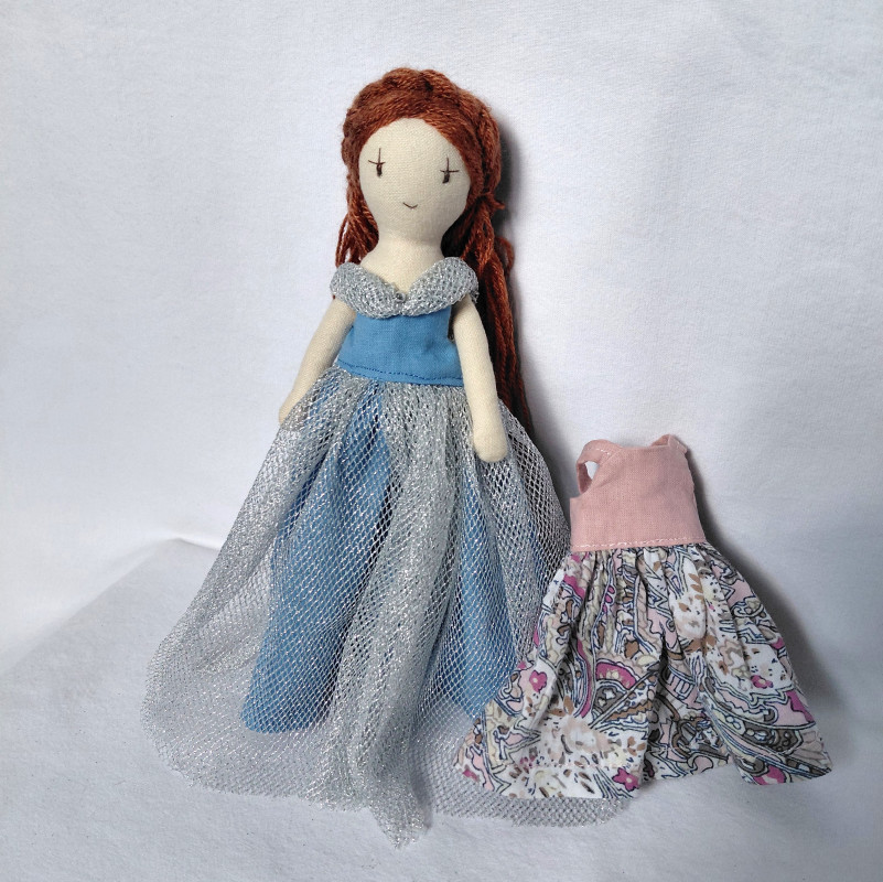 lalka szmacianka z dwiema sukienkami 20 cm (sz8)