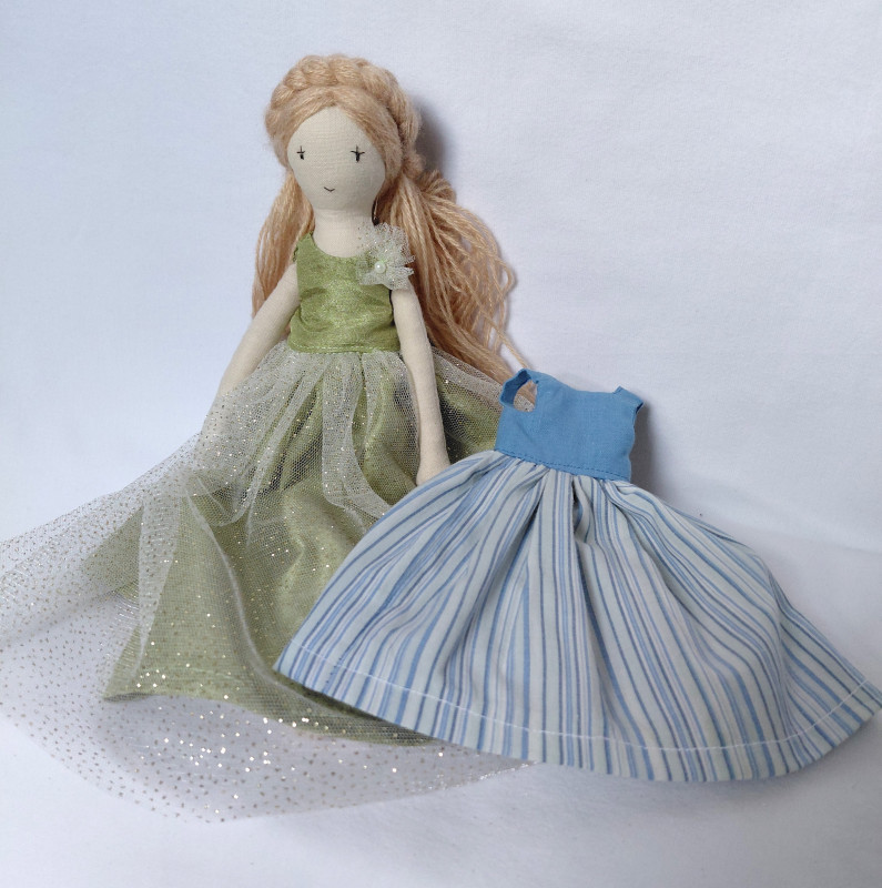 Lalka szmacianka z dwiema sukienkami (sz7)