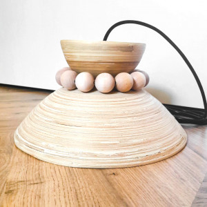 Lampa Wisząca Boho, Abażur Bambusowy, Drewniany