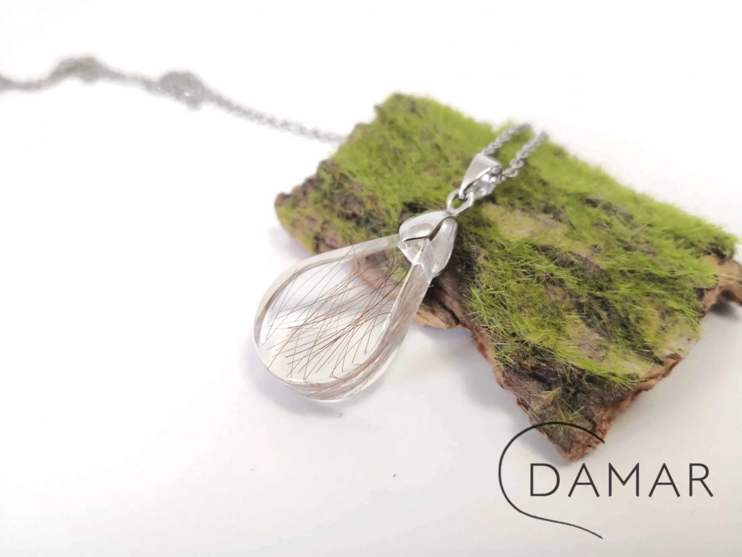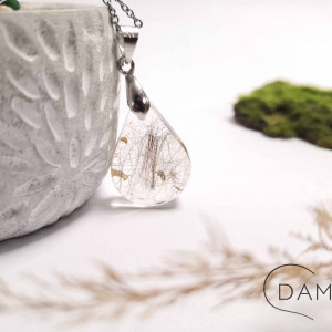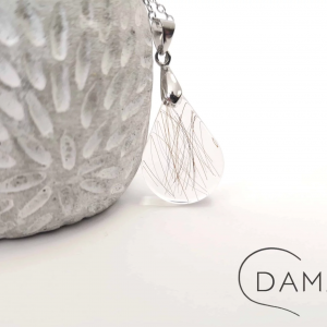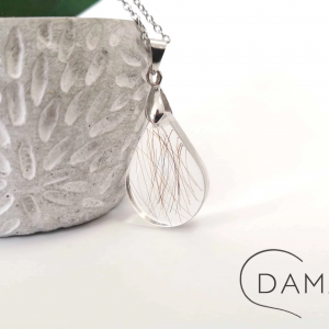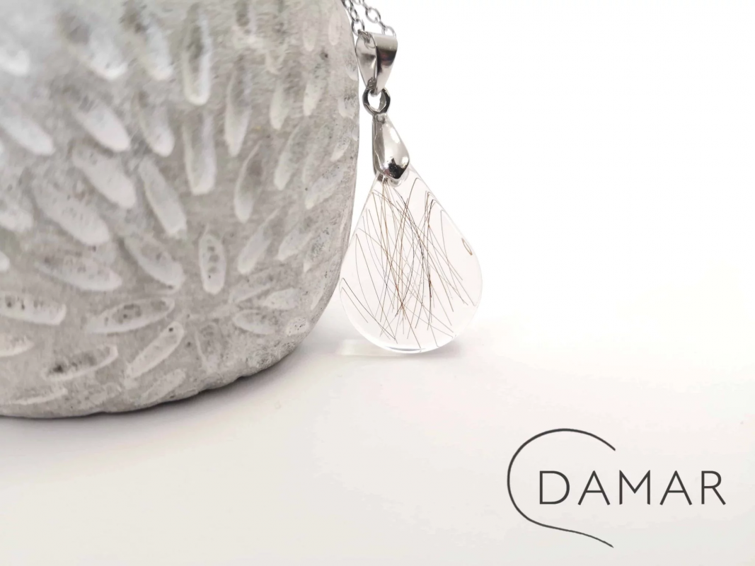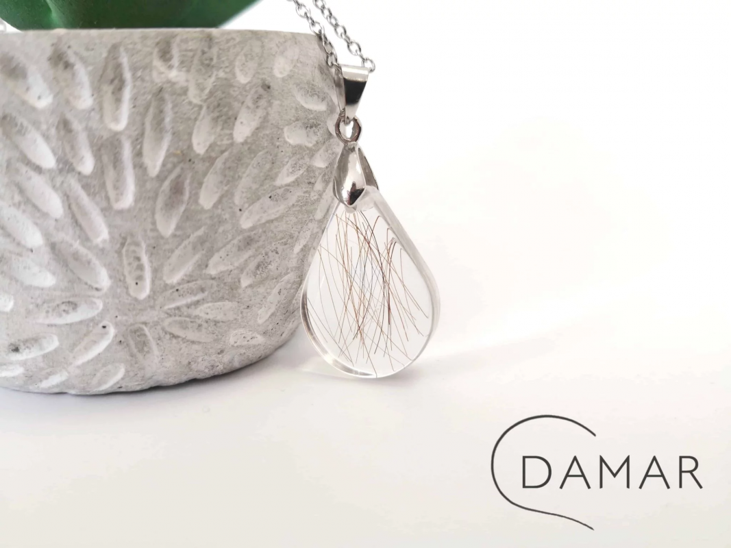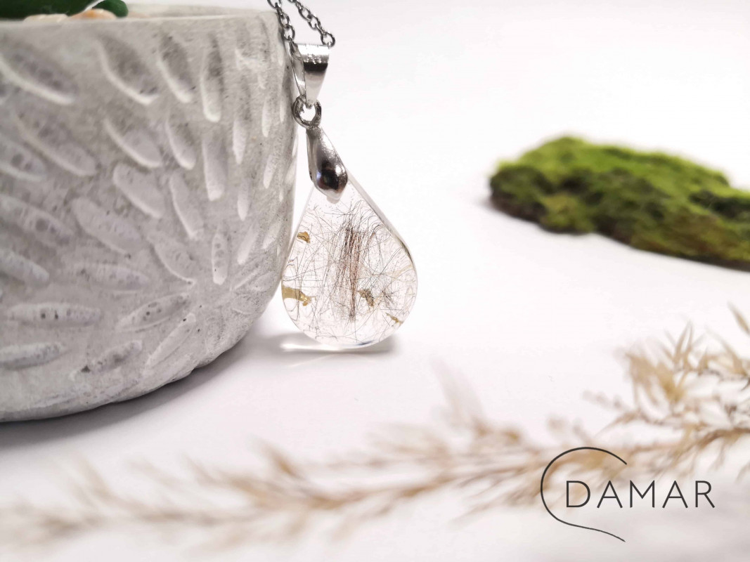 Naszyjnik w kształcie łezki w całości wykonany z żywicy epoksydowej, a w środku zatopione włosy, prochy lub sierść zwierząt. Istnieje możliwość wtopienia w środek małej czarnej literki.