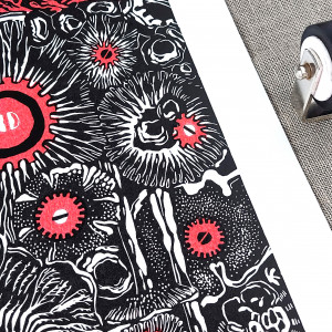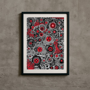 Linoryt Grzyby – Czerń i Czerwień – abstrakcyjna grafika linoryt