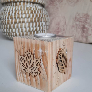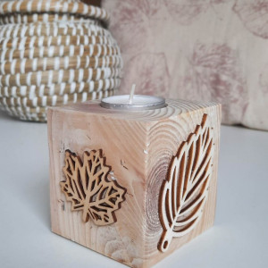 Drewniany świecznik typu tea light. Jego praktyczny, ale i dekoracyjny charakter sprawia, że będzie się pięknie prezentował.