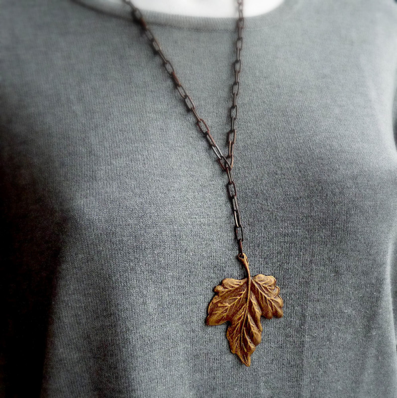 Liść naszyjnik metalowy