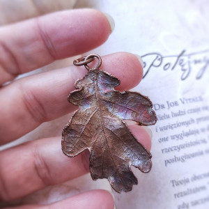 Wisiorek, którym stał się listeczek jest niewielki, ma wymiary 4,5 cm x 3,5 cm.
