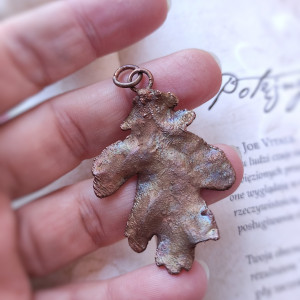 Wisiorek jest zabezpieczony woskiem konserwatorskim.
