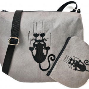 Torebka i portmonetka wykonane z eko zamszu, zapinane na suwak,