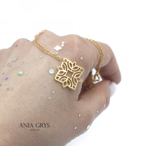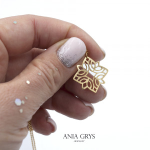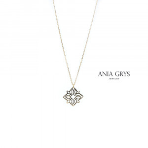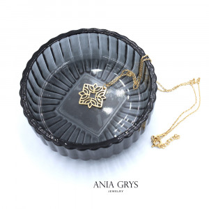 Elegancki naszyjnik z ręcznie wycinaną rozetką. Wykonany ze srebra pozłacanego.