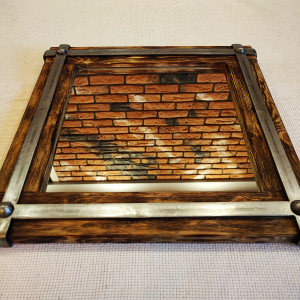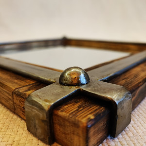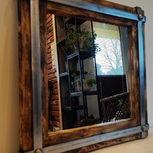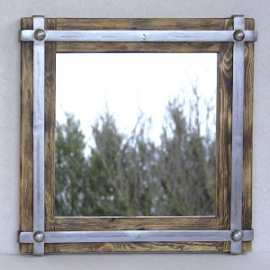 To lustro to unikalny dodatek do każdego wnętrza, łączący w sobie elegancję i rustykalny styl. Drewno ręcznie szczotkowane, opalone ogniem i pomalowane lakierem akrylowym . Metalowe detale w postaci okuć i nitów dodają mu industrialnego wyrazu, sprawiając, że świetnie wpasuje się zarówno w nowoczesne, jak i tradycyjne aranżacje.