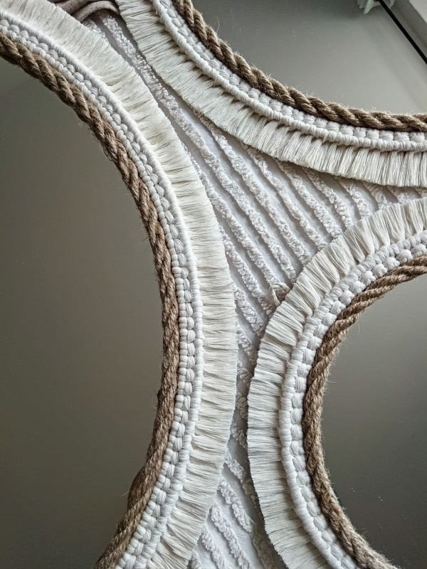 Lustro wykonane z dekoracyjnego makramowego splotu oraz liny jutowej.