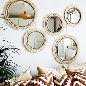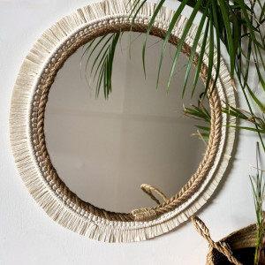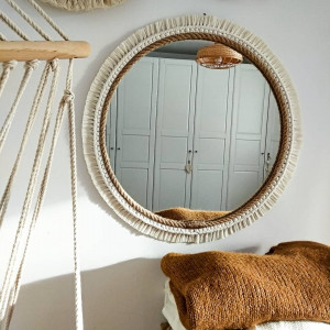 Lustro wykonane z dekoracyjnego makramowego splotu oraz liny jutowej.